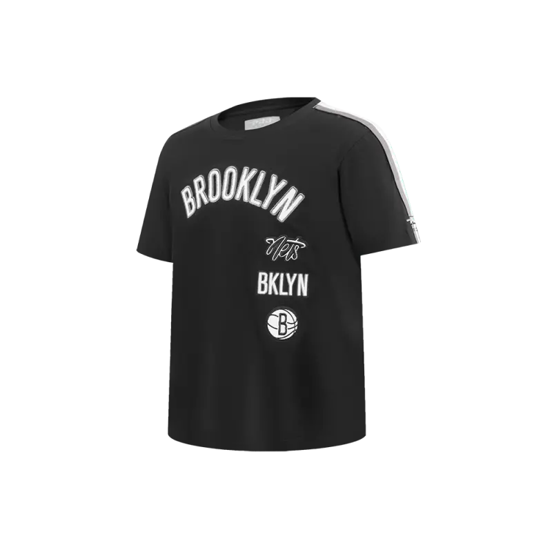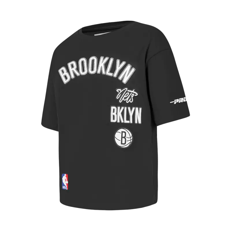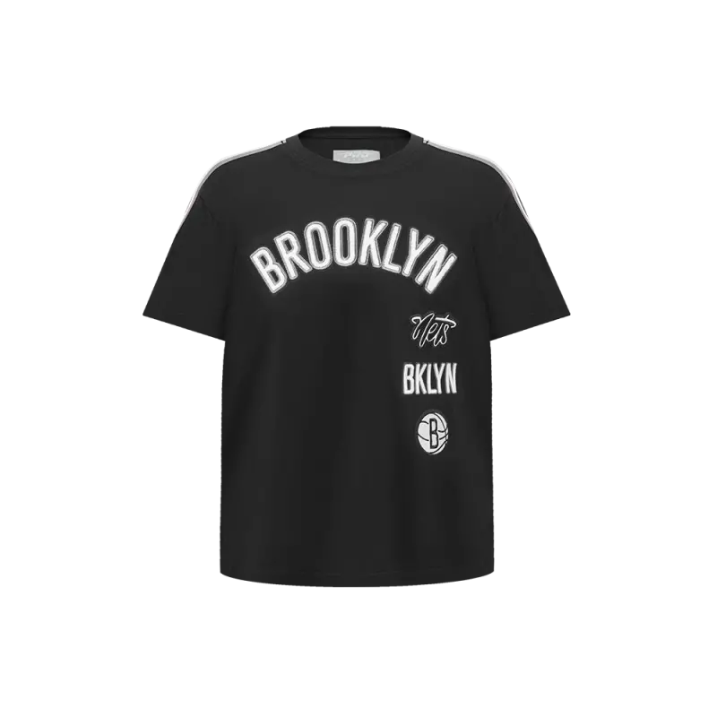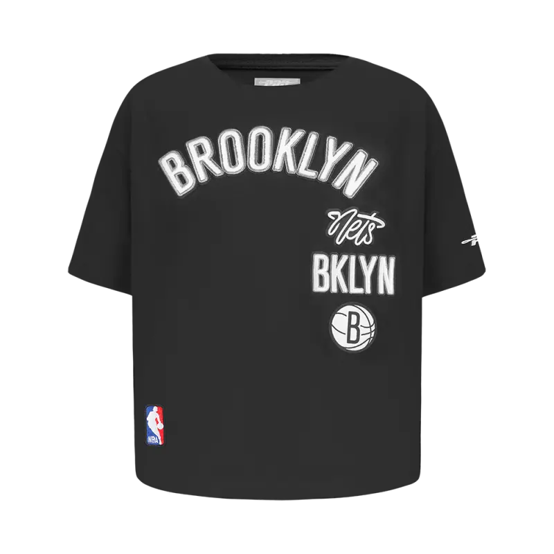 NBA BROOKLYN NETS RETRO CLASSIC BIG GIRLS SHORT SLEEVE BOXY TEE (BLACK)