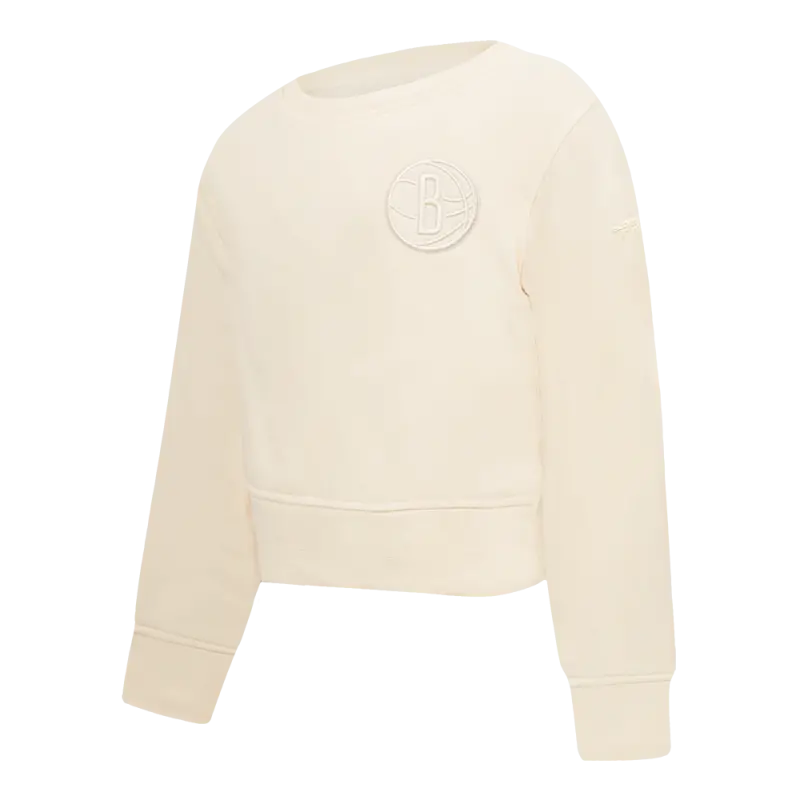 NBA BROOKLYN NETS NEUTRAL TODDLER GIRLS FLEECE CREWNECK (EGGSHELL)