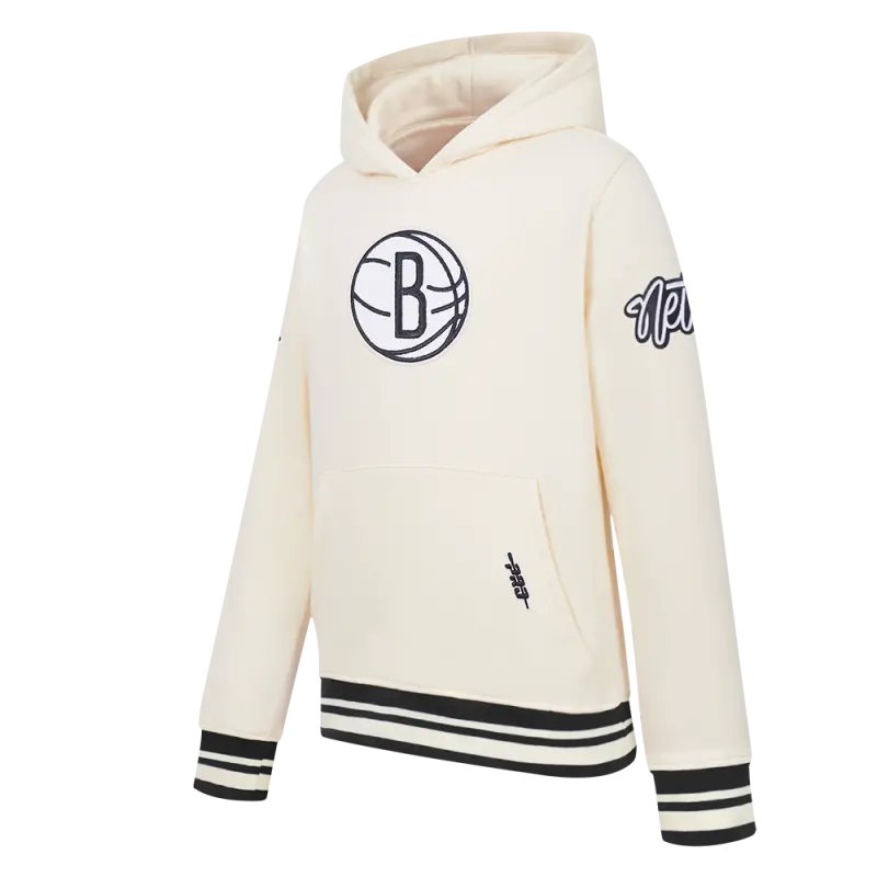 NBA BROOKLYN NETS RETRO CLASSIC BIG BOYS RIB FLEECE PULLOVER HOODIE (EGGSHELL\/ BLACK)