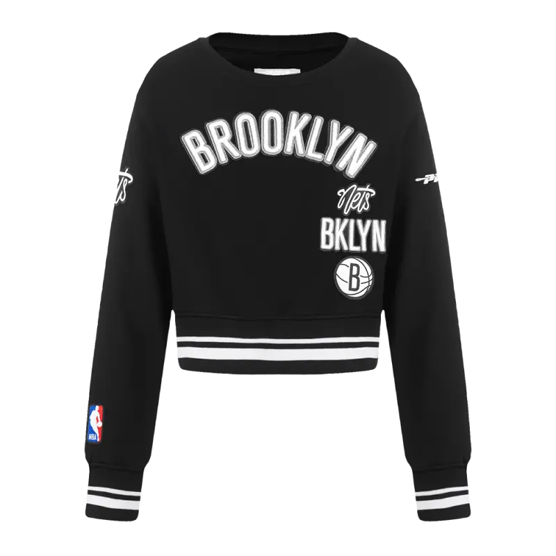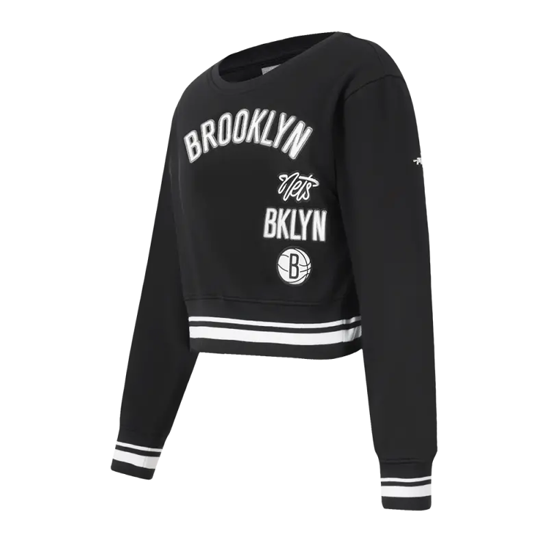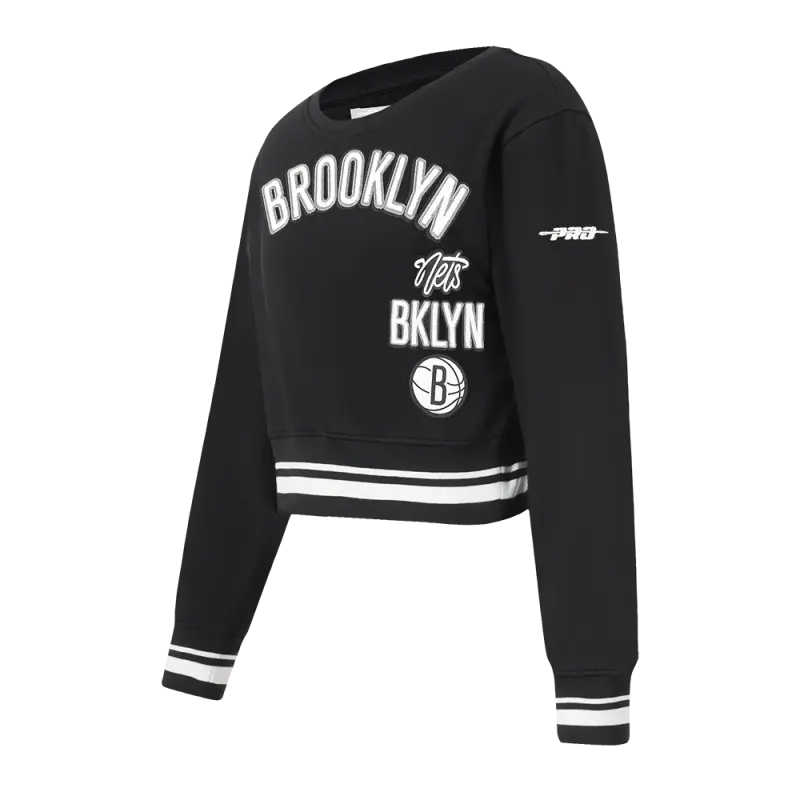 NBA BROOKLYN NETS RETRO CLASSIC BIG GIRLS RIB FLEECE CREWNECK (BLACK)