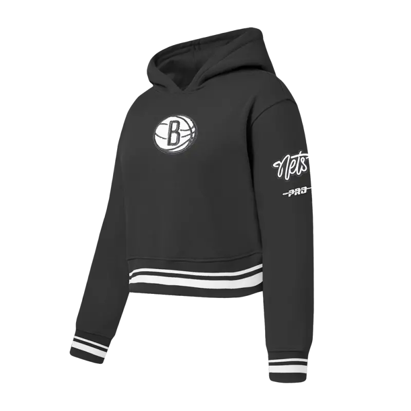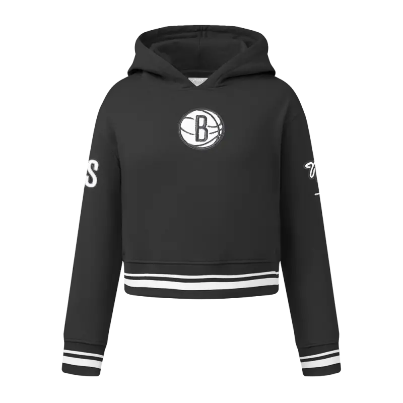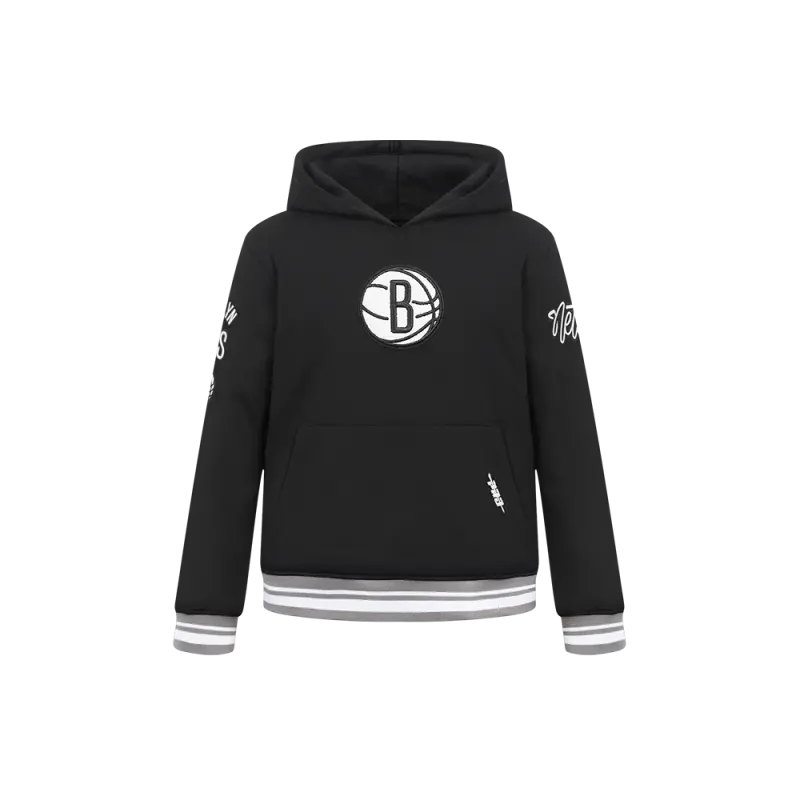 NBA BROOKLYN NETS RETRO CLASSIC BIG GIRLS RIB FLEECE PULLOVER HOODIE (BLACK)