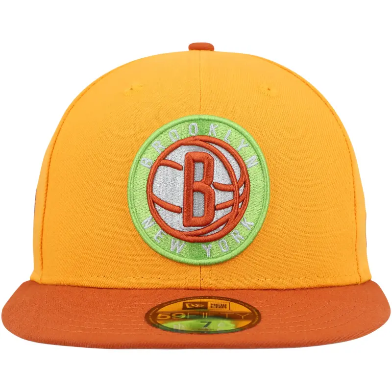 - Get ready for tip-off with a fresh look from your Brooklyn Nets with this 59FIFTY fitted hat from New Era. Its gold details and embroidered team graphics properly showcase your love for your favorite NBA squad. The classic build also features a high crown and flat bill for a trendy look you can be confident in wearing on game day.