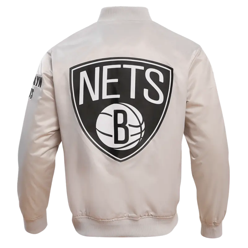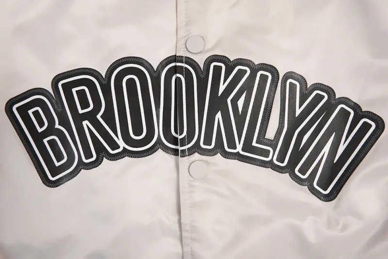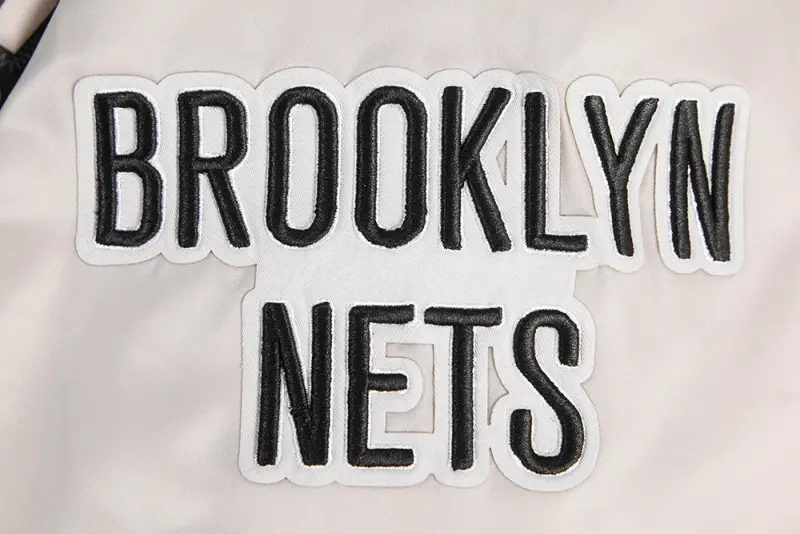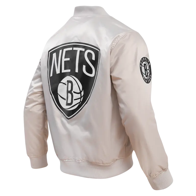 NBA BROOKLYN NETS BIG LOGO MEN’S SATIN JACKET (SILVER)