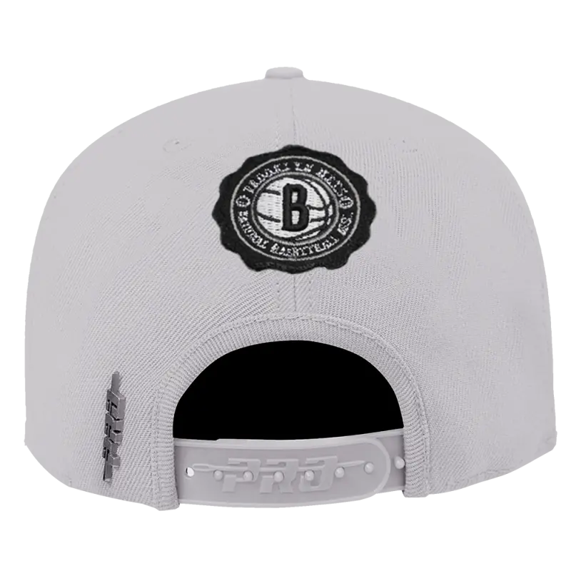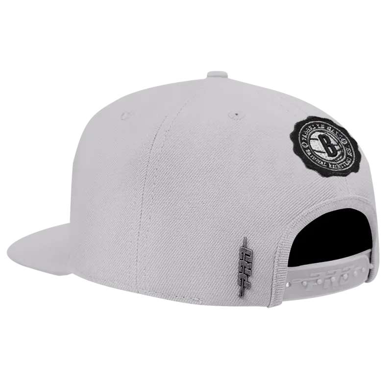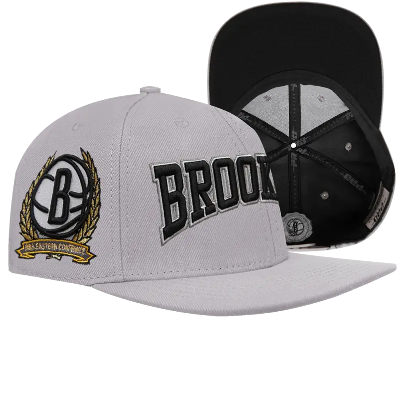 NBA BROOKLYN NETS CREST EMBLEM WORDMARK WOOL SNAPBACK HAT (GRAY)