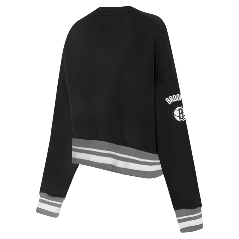 NBA BROOKLYN NETS MASHUP WOMEN’S RIB CREWNECK (BLACK\/GRAY)