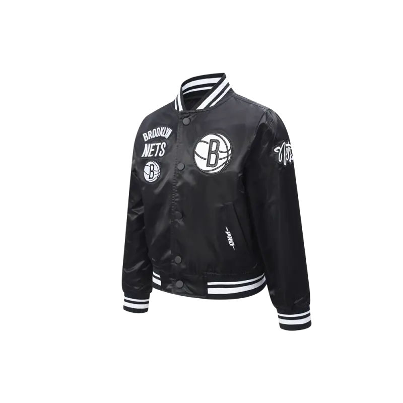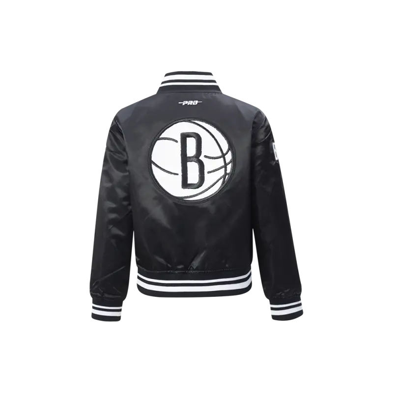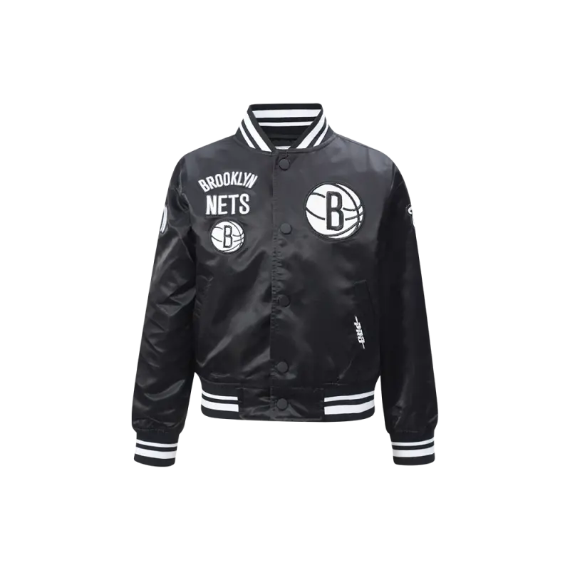 NBA BROOKLYN NETS RETRO CLASSIC LITTLE BOYS RIB SATIN JACKET (BLACK\/GRAY)