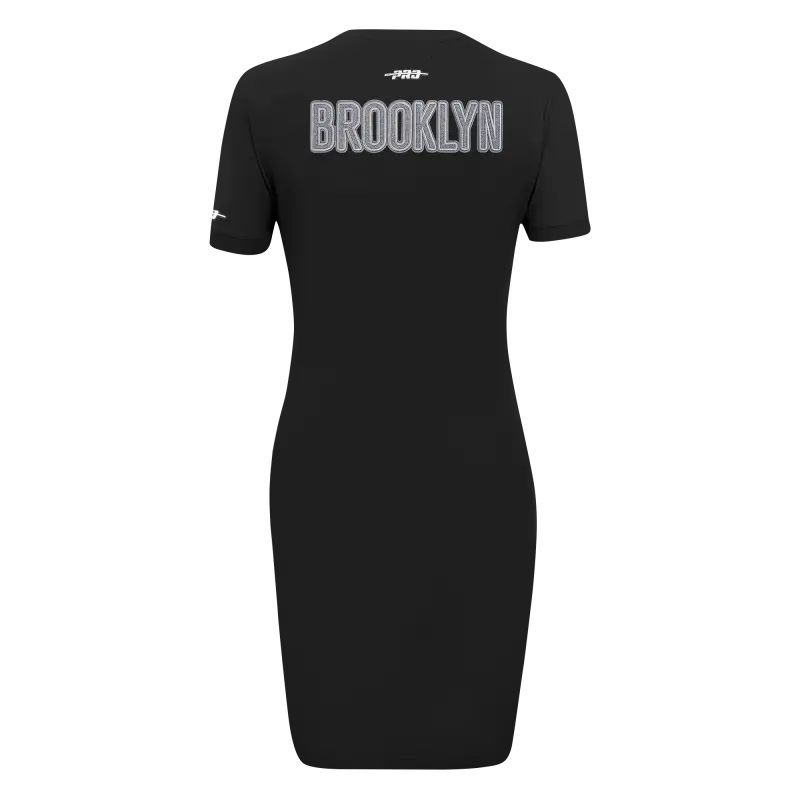 NBA BROOKLYN NETS REVERSE FRENCH TERRY WOMEN’S BODYCON DRESS (BLACK)