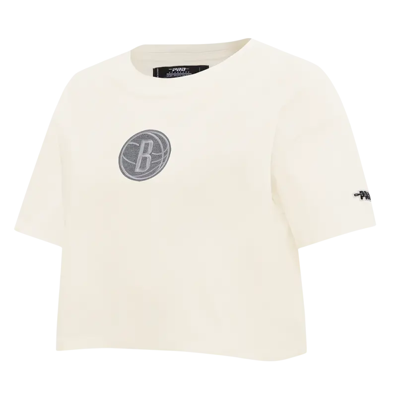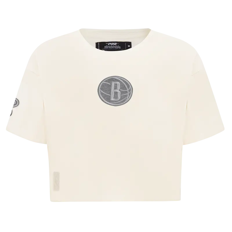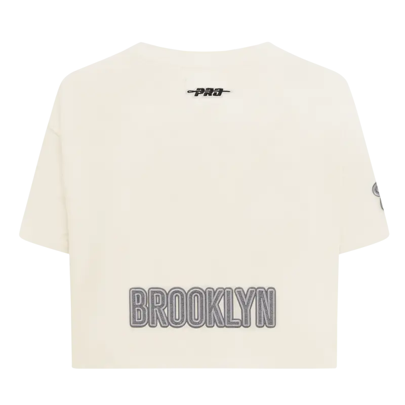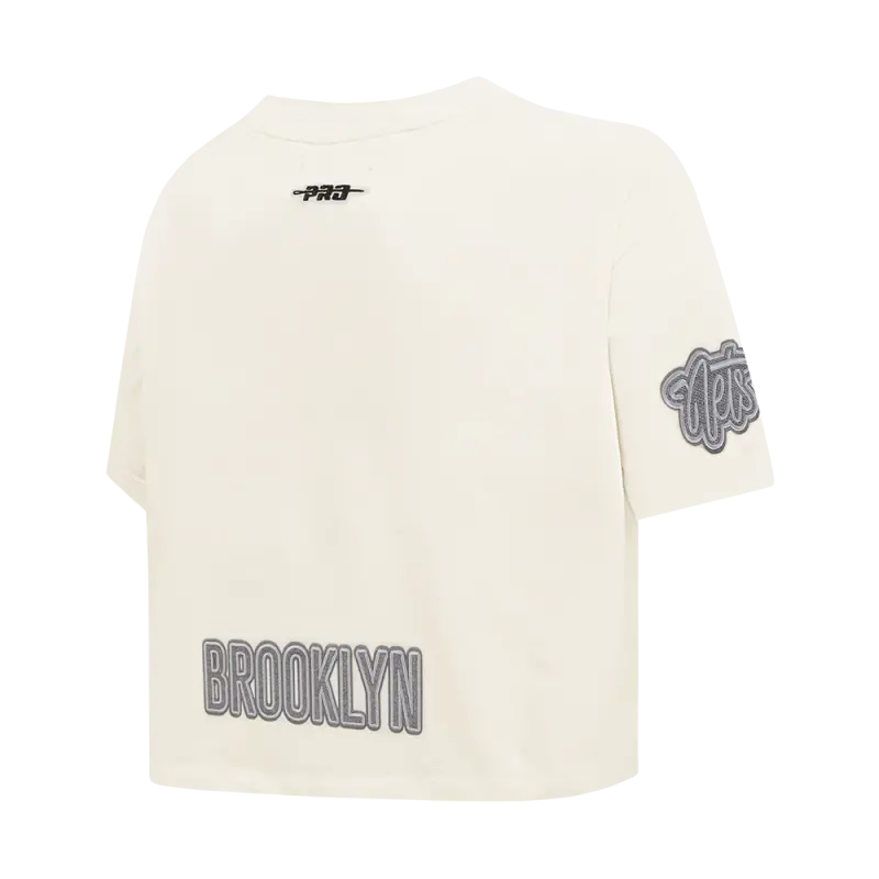 NBA BROOKLYN NETS REVERSE FRENCH TERRY WOMEN’S SINGLE JERSEY BOXY TEE (EGGSHELL)