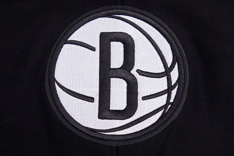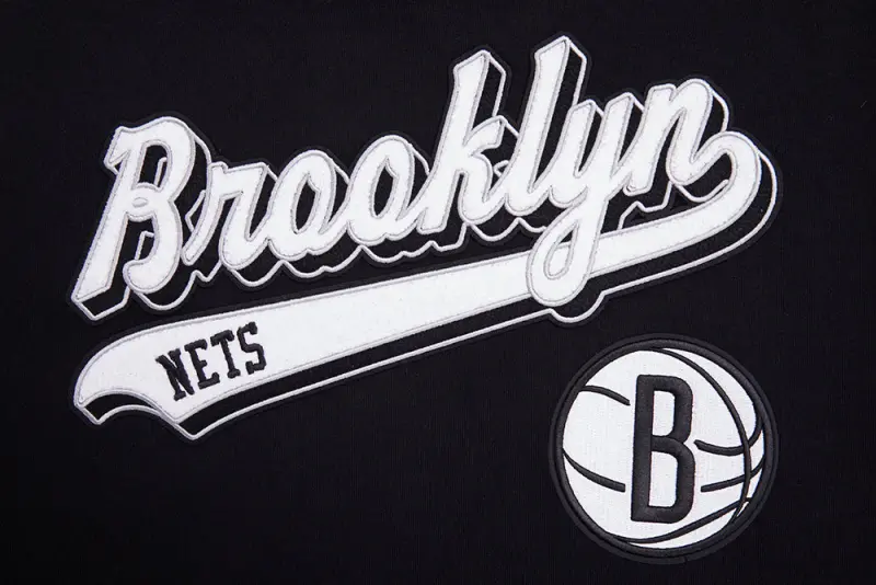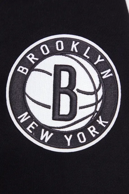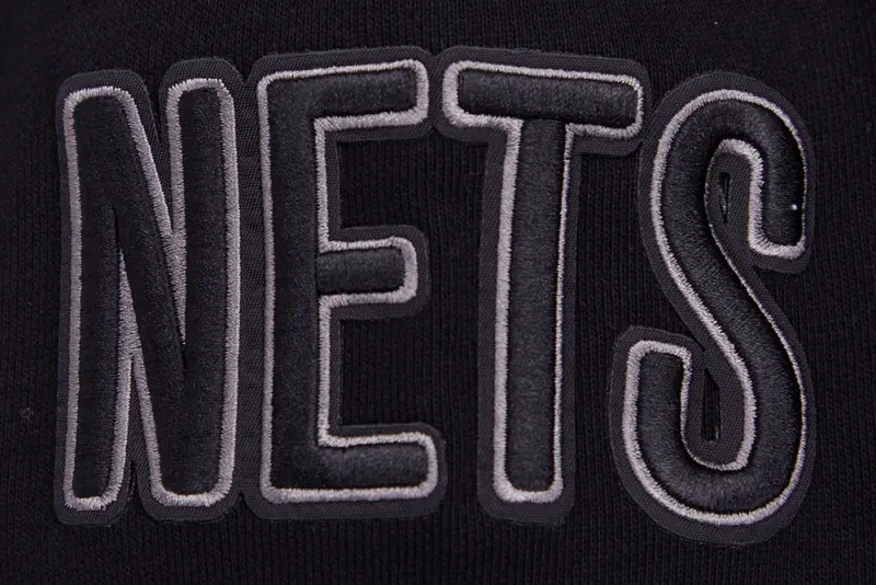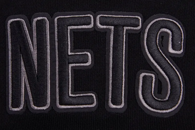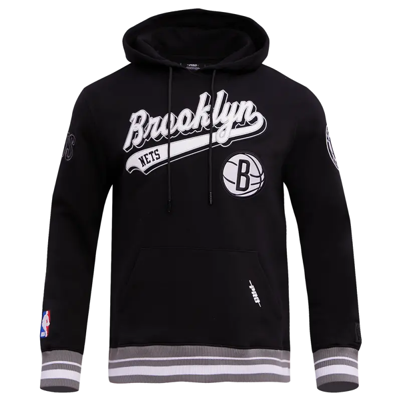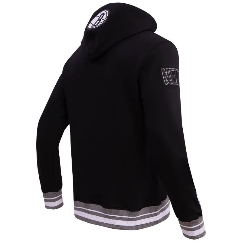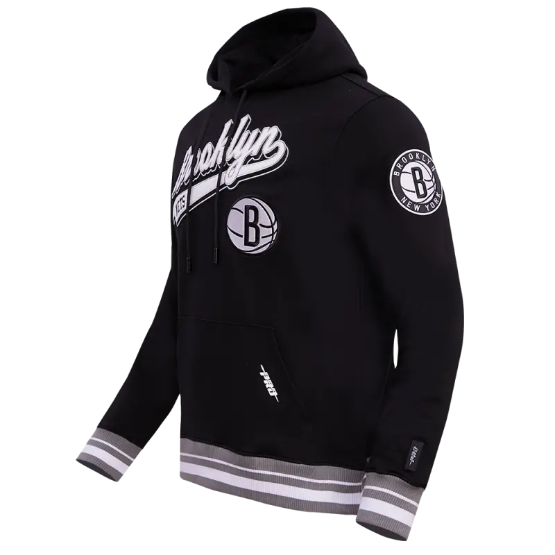 NBA BROOKLYN NETS SCRIPT TAIL MEN’S RIB FLEECE PULLOVER HOODIE (BLACK\/GRAY)