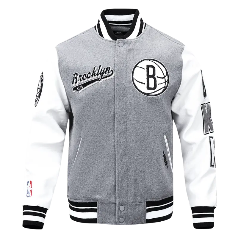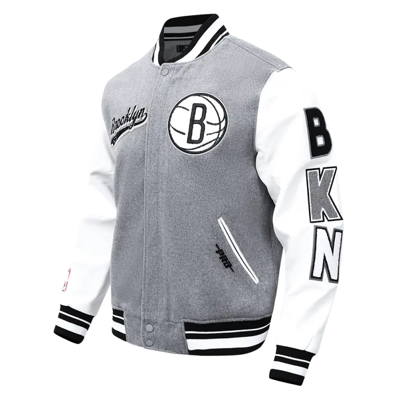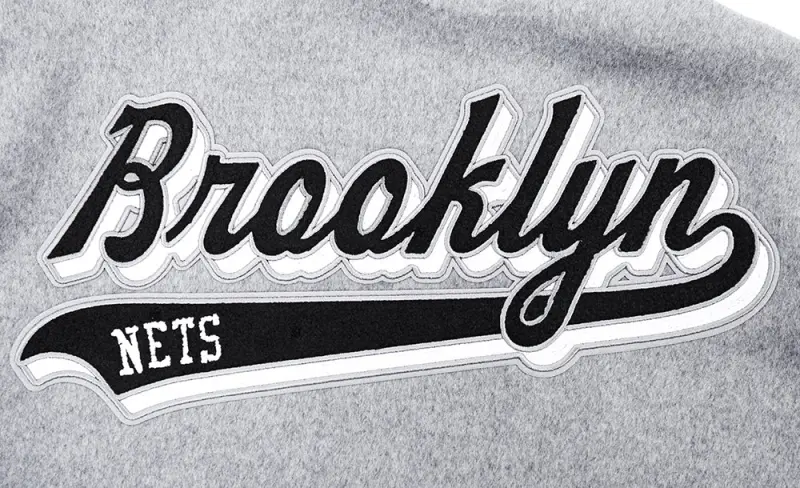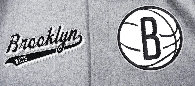 NBA BROOKLYN NETS SCRIPT TAIL MEN’S RIB WOOL VARSITY (HEATHER GREY\/WHITE\/BLACK)