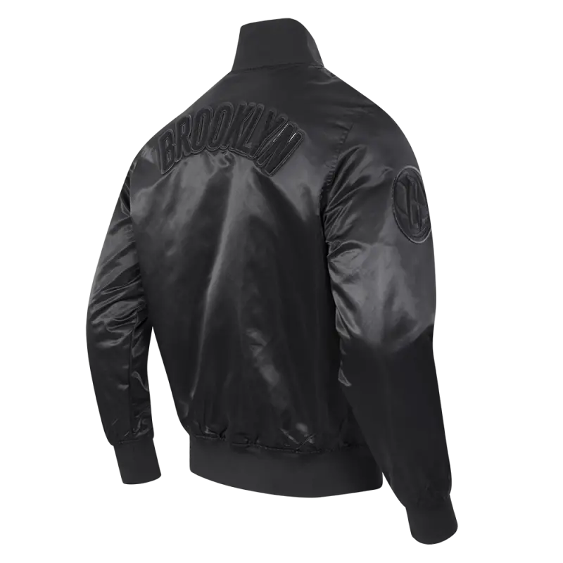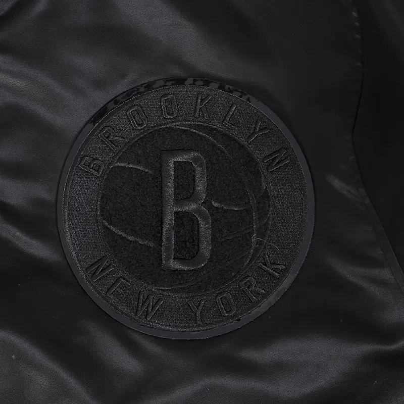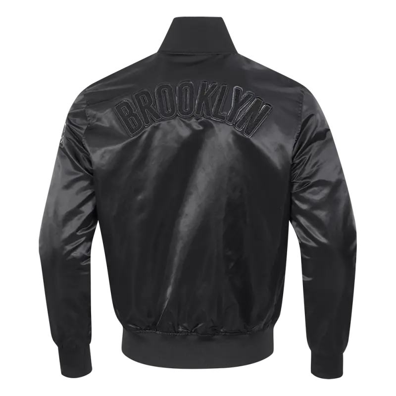 NBA BROOKLYN NETS TRIPLE BLACK MEN’S SATIN JACKET (BLACK)